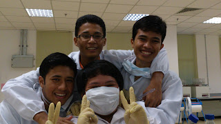 ok ni adala senarai untuk subjek masa first sem ni.. memang susah sbab ni la first time aku study xde mathematics.. seriously, aku minat mathematics dan biology.. xpe, demi minat aku teruskn juga.. hehhee :) emmm microbiology? microbiology ni pasal study diseases la.. kalo kmu google la kn, microbiology ni mcm tu la.. hehehehee ( Microbiology - Wikipedia )... bnyk2 kn la tengok wikipedia.. really, helping search engine during degree studies.. hehehee.. yg lain tu kmu check la sendiri ye... xbest plak kalo smua da bgtaw, korg dok goyang kaki je kn.. hehehe sekadar ini shaja la yg mampu untuk diberitahu sekrang.. ni plak gmbr masa kita org lab.. hehehe kt sni 90% memang dlm lab.. totally dlm lab.. ahhahaha tu yg best tu... :)